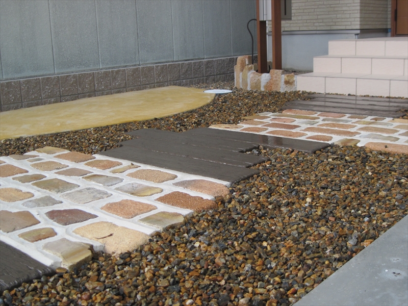 門から玄関口までの通路をオシャレなアンティークレンガや天然石・グランドコンクリートなどお好みのデザインとカラーで華やかに。