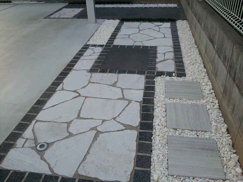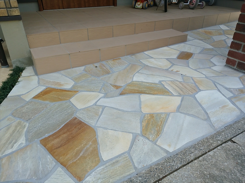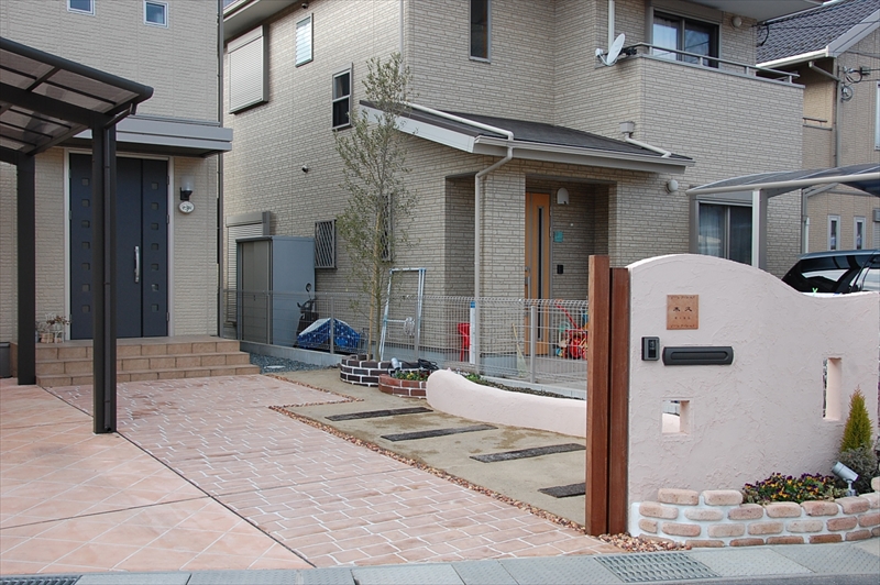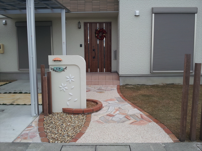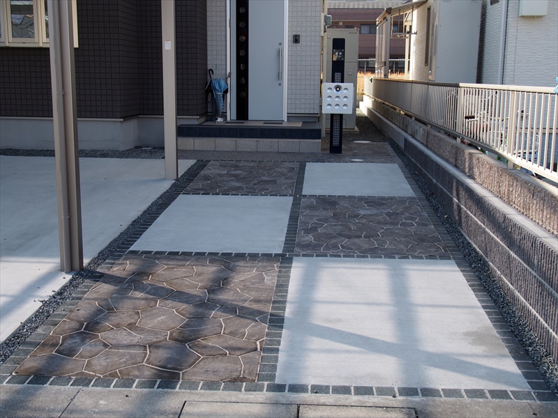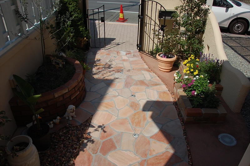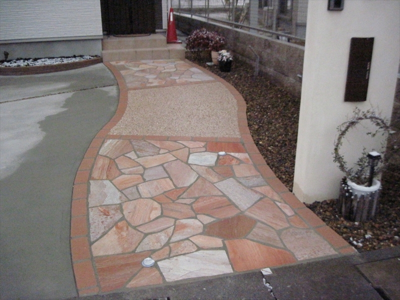 門から玄関口までの通路をオシャレなアンティークレンガや天然石・グランドコンクリートなどお好みのデザインとカラーで華やかに。