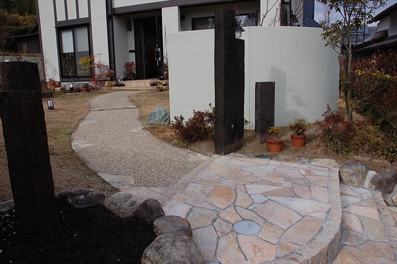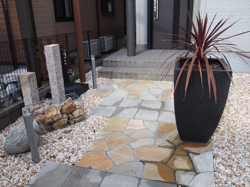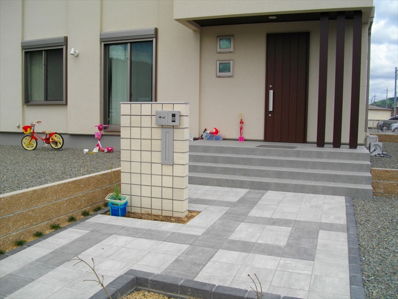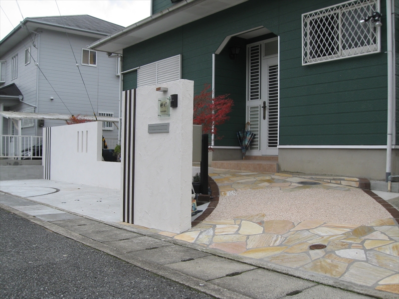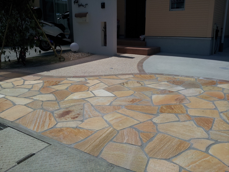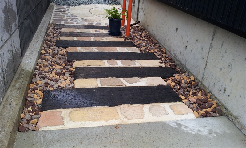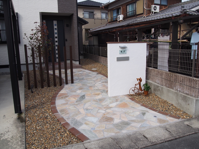 門から玄関口までの通路をオシャレなアンティークレンガや天然石・グランドコンクリートなどお好みのデザインとカラーで華やかに。