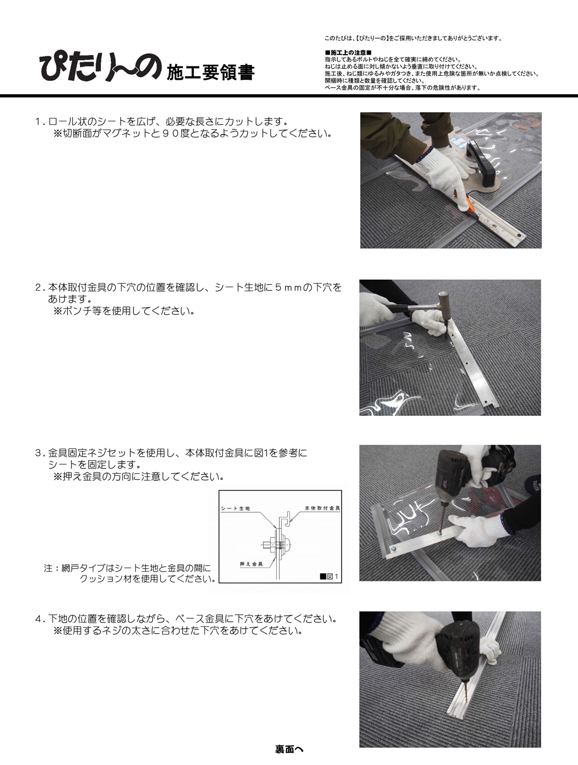 注:網戸タイプはシート生地と金具の間にクッション材を使用してください。 |