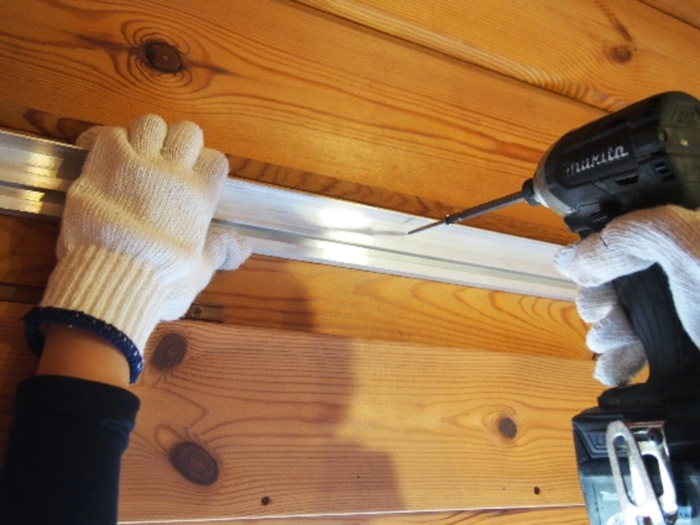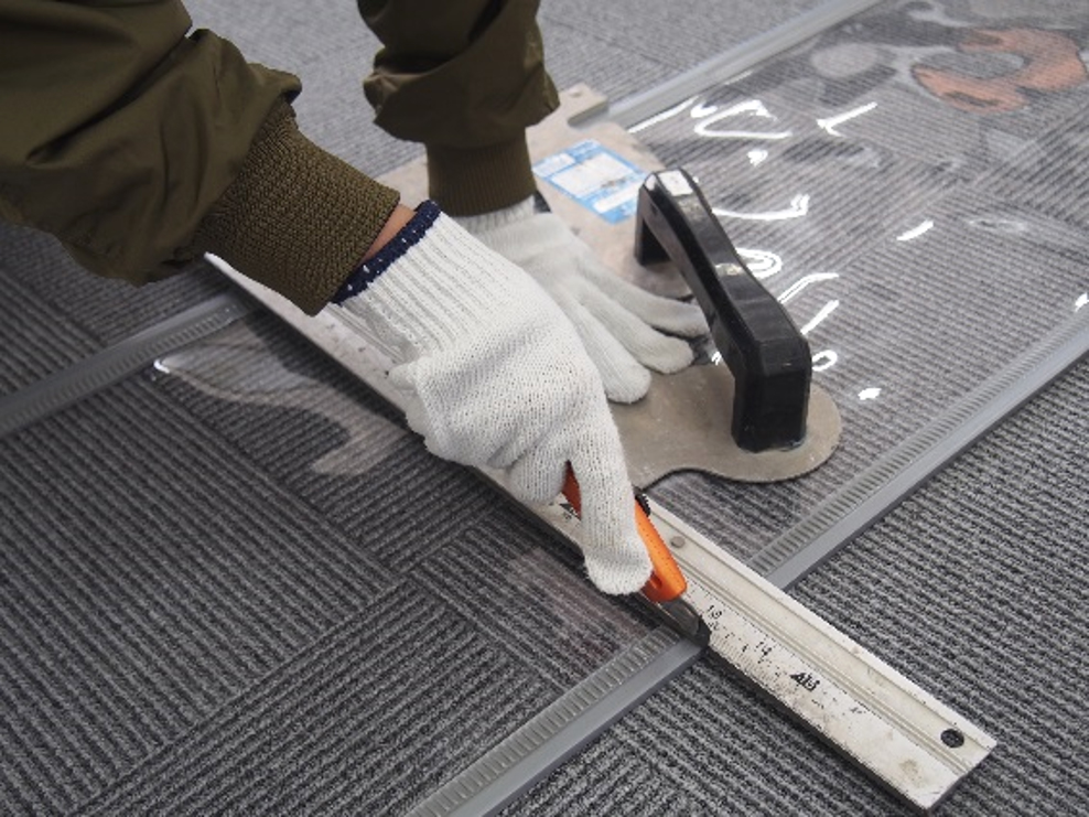 | 1.ロール状のシートを広げ、必要な長さにカットします。 ※切断面がマグネットと90度となるようカットしてください。 |