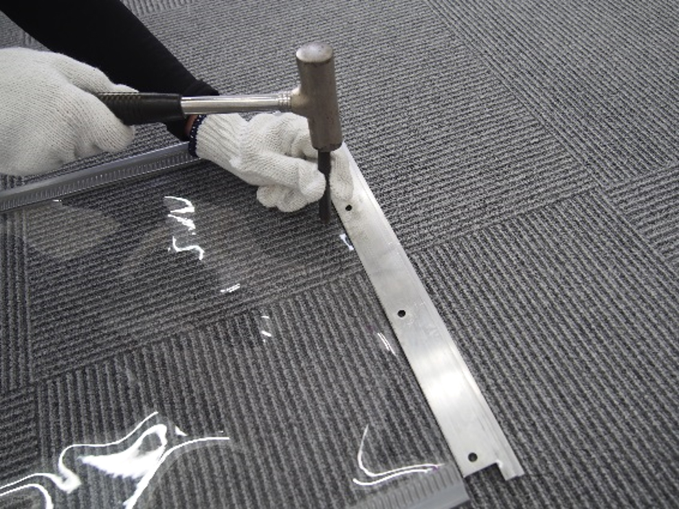 | 7.床面とカーテン生地の隙間を確認し、カットが必要な場合は調整してください。 |