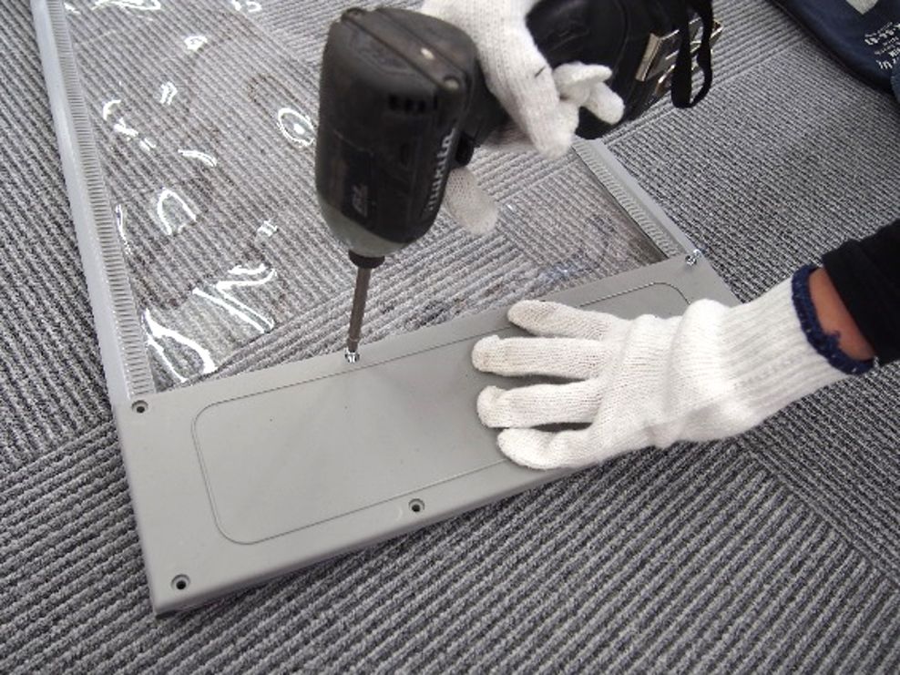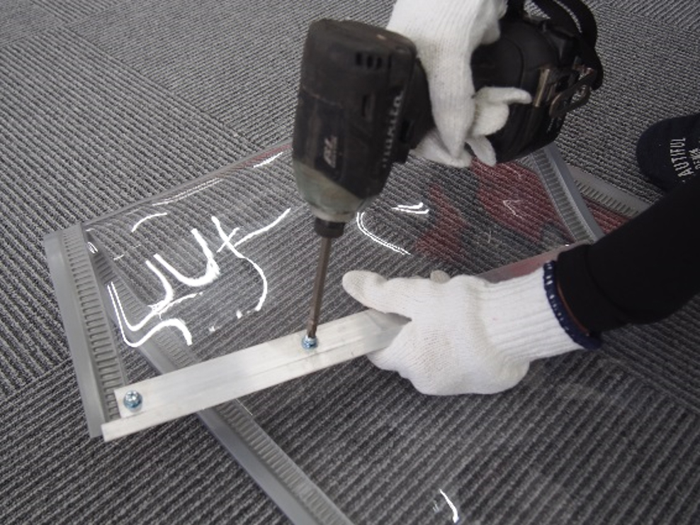 | 3.金具固定ネジセットを使用し、本体取付金具に図1を参考にシートを固定します。 ※押え金具の方向に注意してください。