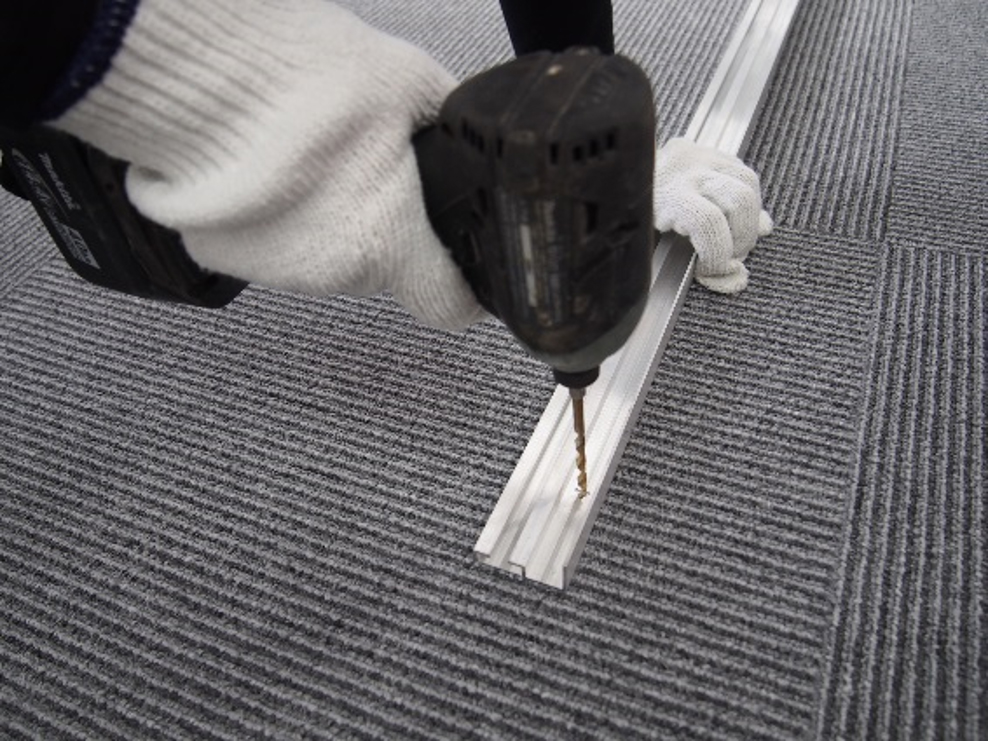 | 4.下地の位置を確認しながら、ベース金具に下穴をあけてください。 ※使用するネジの太さに合わせた下穴をあけてください。 |